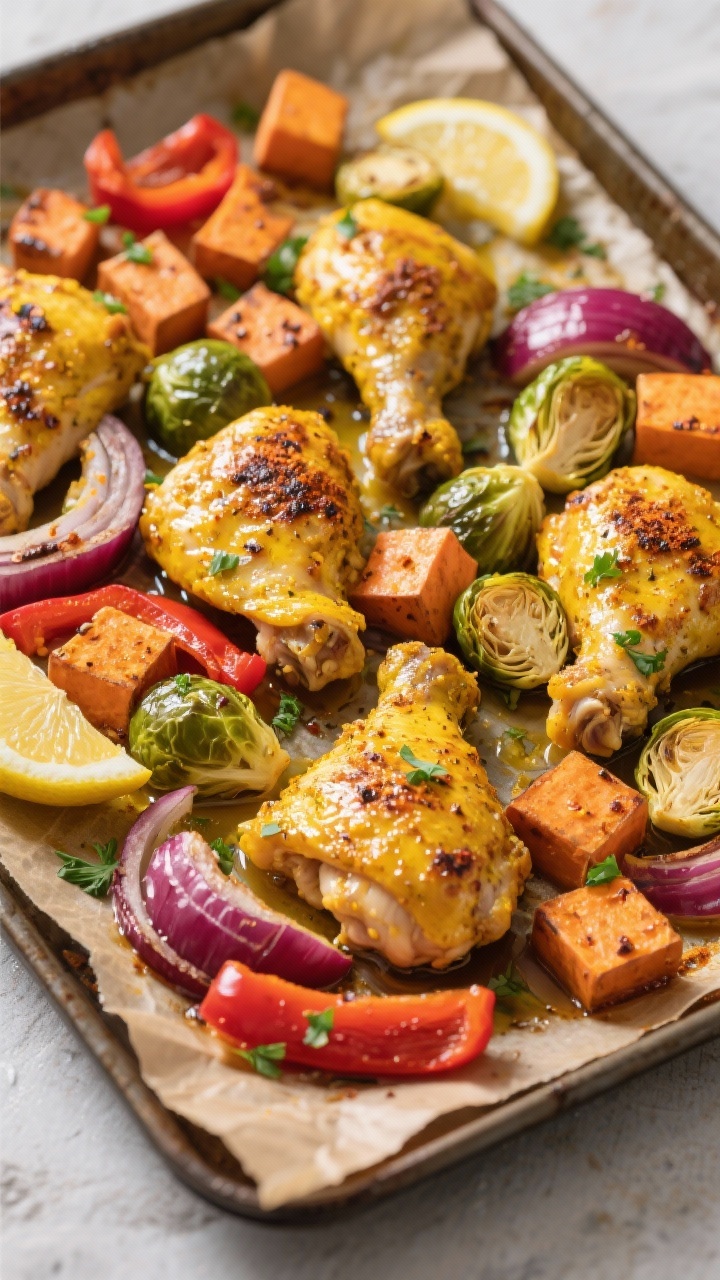 One pan, big flavor, minimal cleanup—this is cozy efficiency at its finest. The turmeric-garlic rub makes the chicken juicy and fragrant, while a rainbow of roasted veggies turns sweet and caramelized. It’s the perfect weeknight meal when you want comfort that still feels clean.