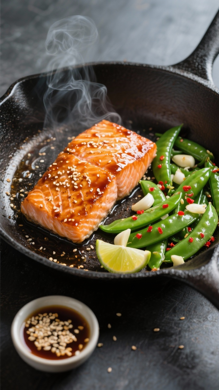 Sweet, salty, and umami-packed, this one hits like your favorite takeout—only lighter and faster. The glaze caramelizes in the pan while the salmon stays buttery. Snap peas bring the crunch, and it all feels like a tiny weeknight victory.