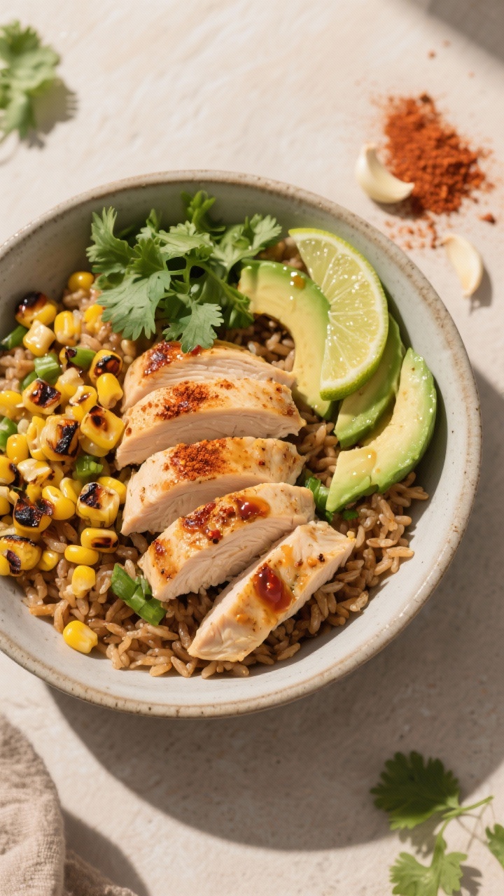 1. Zesty Chili-Lime Chicken Bowls With Charred Corn and Avocado