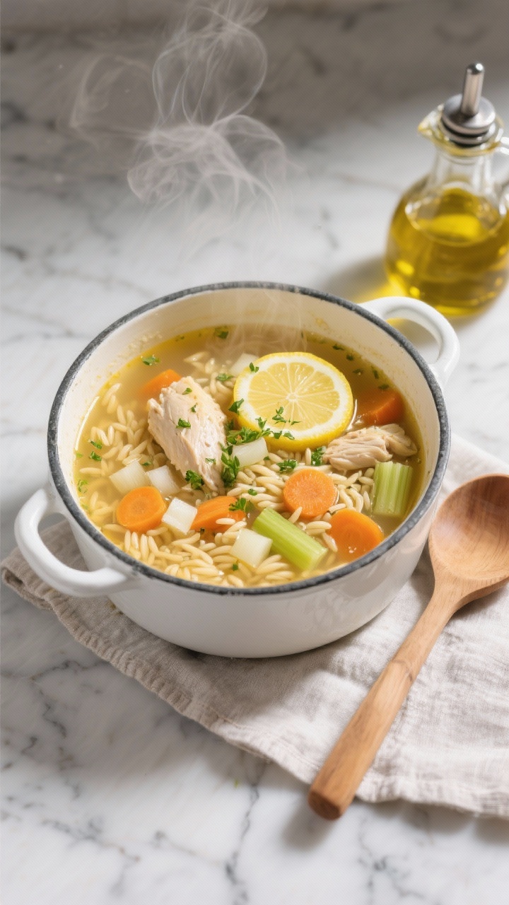 Serve with extra lemon wedges for the bright-at-heart. Swap orzo for cauliflower rice to lower carbs, or add a beaten egg at the end (off heat) for a silky avgolemono vibe. Trust me, that dill? Magic.