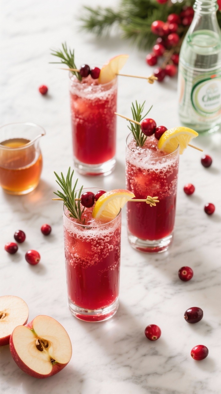 - Sparkling Cran-Apple Rosemary Fizz: Great with salty appetizers like baked brie or prosciutto-wrapped pears.
